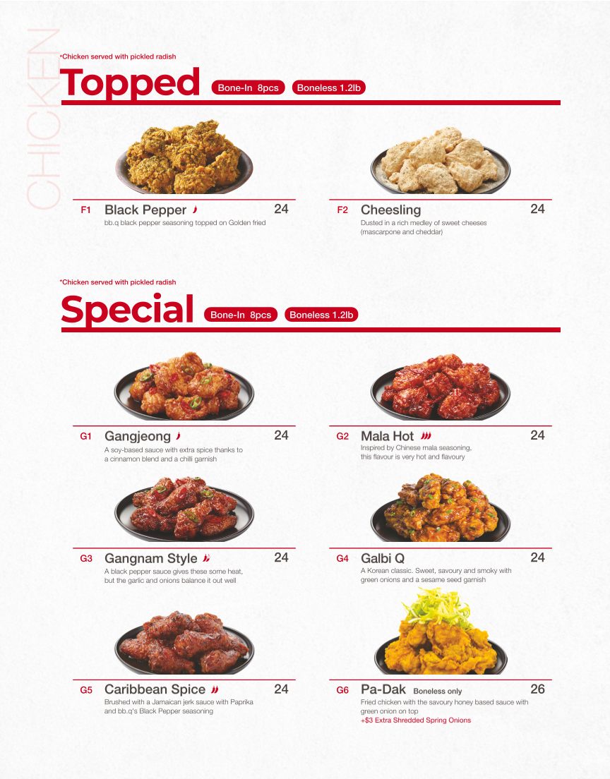 But the excitement doesn't stop there. From classic bone-in and boneless chicken options to crispy fried cauliflower and Korean skewered sausage, there is something for everyone at bb.q Chicken New Market. The mix boxes allow you to enjoy two flavors of chicken at a discounted price, while the sandwiches and salads offer a refreshing twist to your meal.